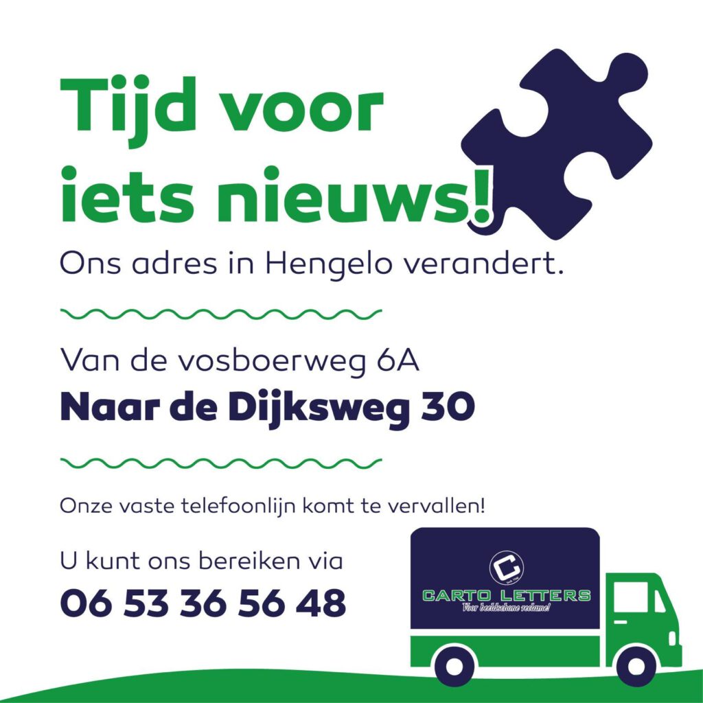 Welkom op onze website en leuk dat je hier een kijkje neemt. Wij zijn Carto Letters en al vanaf 1948 zijn wij gespecialiseerd in binnen en buiten reclame. Ben jij opzoek naar mooie reclame voor op jouw pand of auto, dan bent u hier bij het juiste adres. Voor meer informatie kunt u altijd bellen of mailen naar een van onze medewerkers.