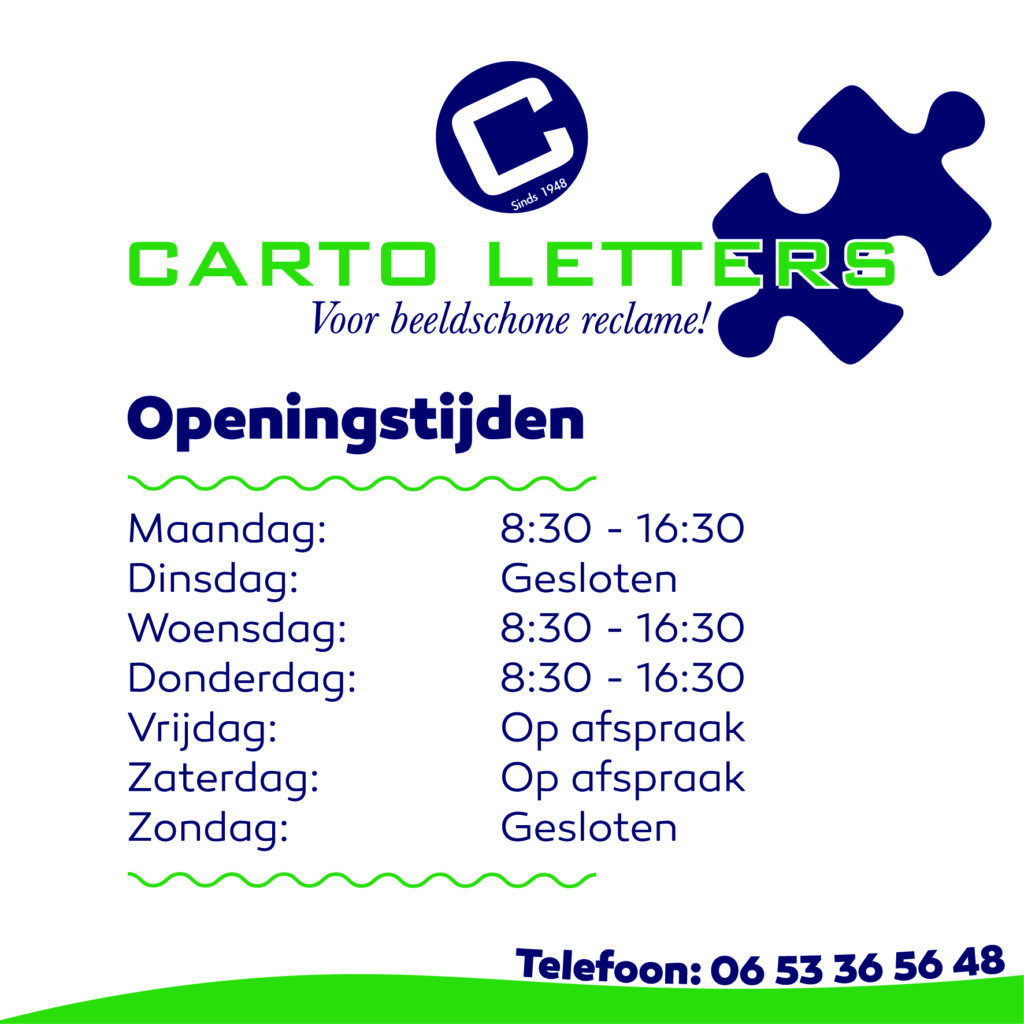 Telefoon: 0653365648 Mail: info@cartoletters.nl Instagram: carto.letters Dijksweg 30, 7556 KB Hengelo